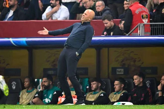 而在战术逻辑这块,和前任克洛普相比,斯洛特显然也没有放手一搏的勇气。在这支红军,高位压迫已经成了没有办法的办法,大多数时间,球队的一切行动都以控制节奏为主,但球队自己的提速也打不起来,只能在破密集防守的泥潭里挣扎。对阵水晶宫的最后一个回合,因为弗林蓬的进攻过于冒险导致丢球,斯洛特当场怒斥了自家右后卫,可要是没有在进攻端的勇气,红军又怎样才能找回在进攻端的统治力呢?