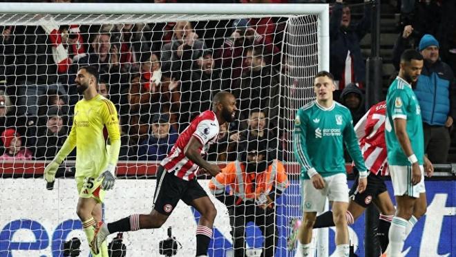 尽管客场2比3不敌布伦特福德,但利物浦的失利并非偶然。比赛开场仅第5分钟,布伦特福德便用一记教科书般的边线球战术打破僵局——迈克尔·凯奥德投出一记力量十足、精准制导的边线球,丹戈·夸塔拉抢在防守球员之前头球破门,为球队取得梦幻开局。