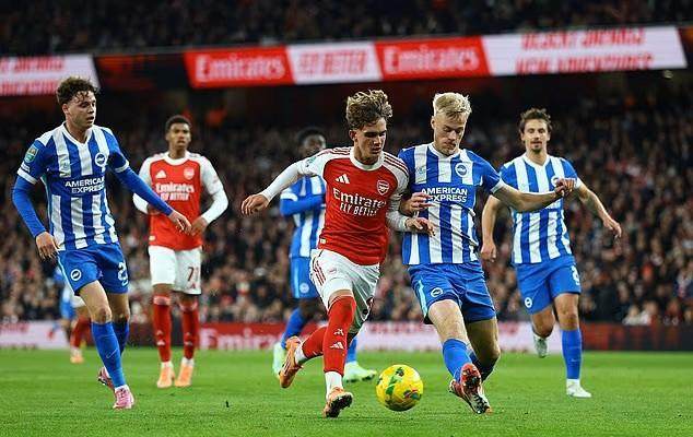 其实由24岁“老将”萨卡攻入的第二球,也充满了青春元素,因为先迫使布莱顿门将扑球脱手的,是单刀赴会的哈里曼-安努斯。这个陌生的名字是阿森纳青训的又一新产品,17岁踢中锋,也可以踢边锋,身高不错速度不错,本赛季已经在U21预备队踢了不少比赛,贡献3球1助。