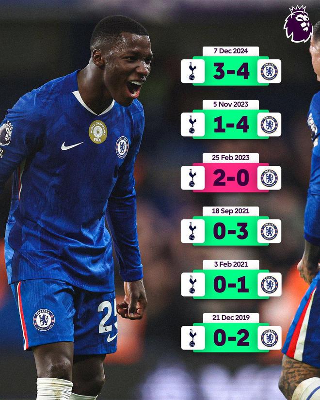 据数据统计,切尔西在过去14次与热刺的英超交锋中赢下了11场,并在热刺近六次主场中五次取胜。
