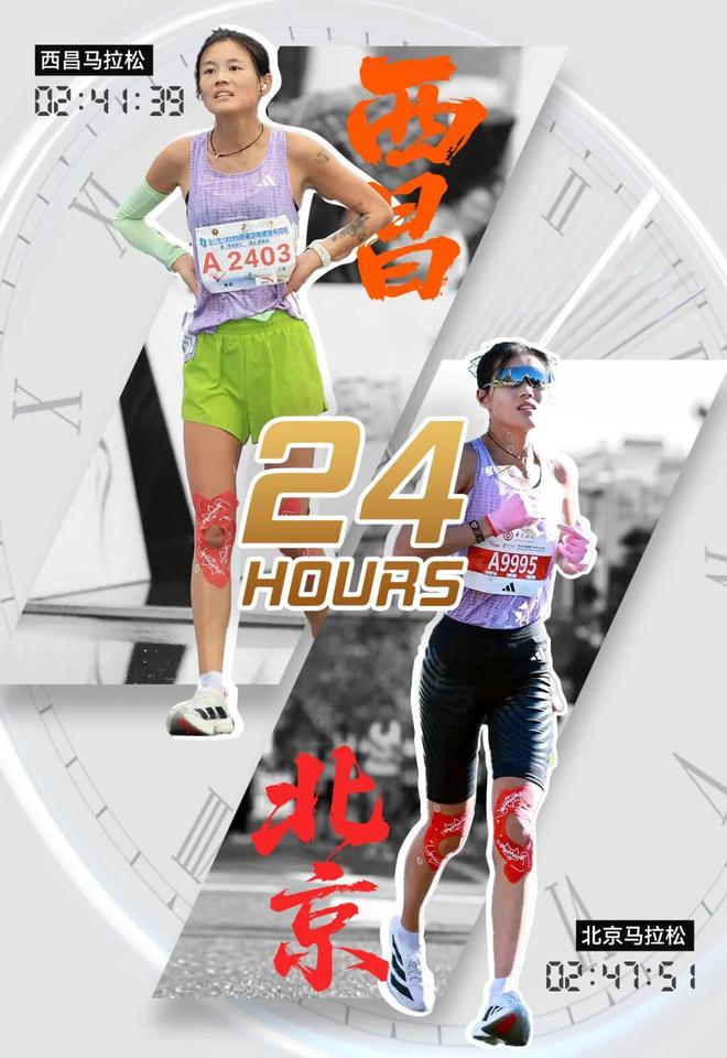 更疯狂的是拿到冠军喜提5万美元的奖金后,周昊没有退出隔一天鸣枪起跑的北京马拉松。而是火速转场,从赛场赶到机场,搭乘飞往北京的航班,从机场地铁转到入住的酒店已是夜幕降临。第二天,回到她之前重新达标国家健将的“福地”,以2:47:47完赛。
