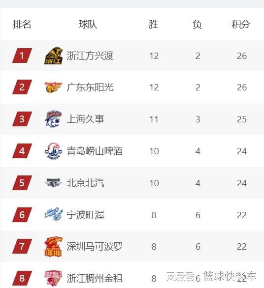 附:CBA积分榜最新排名